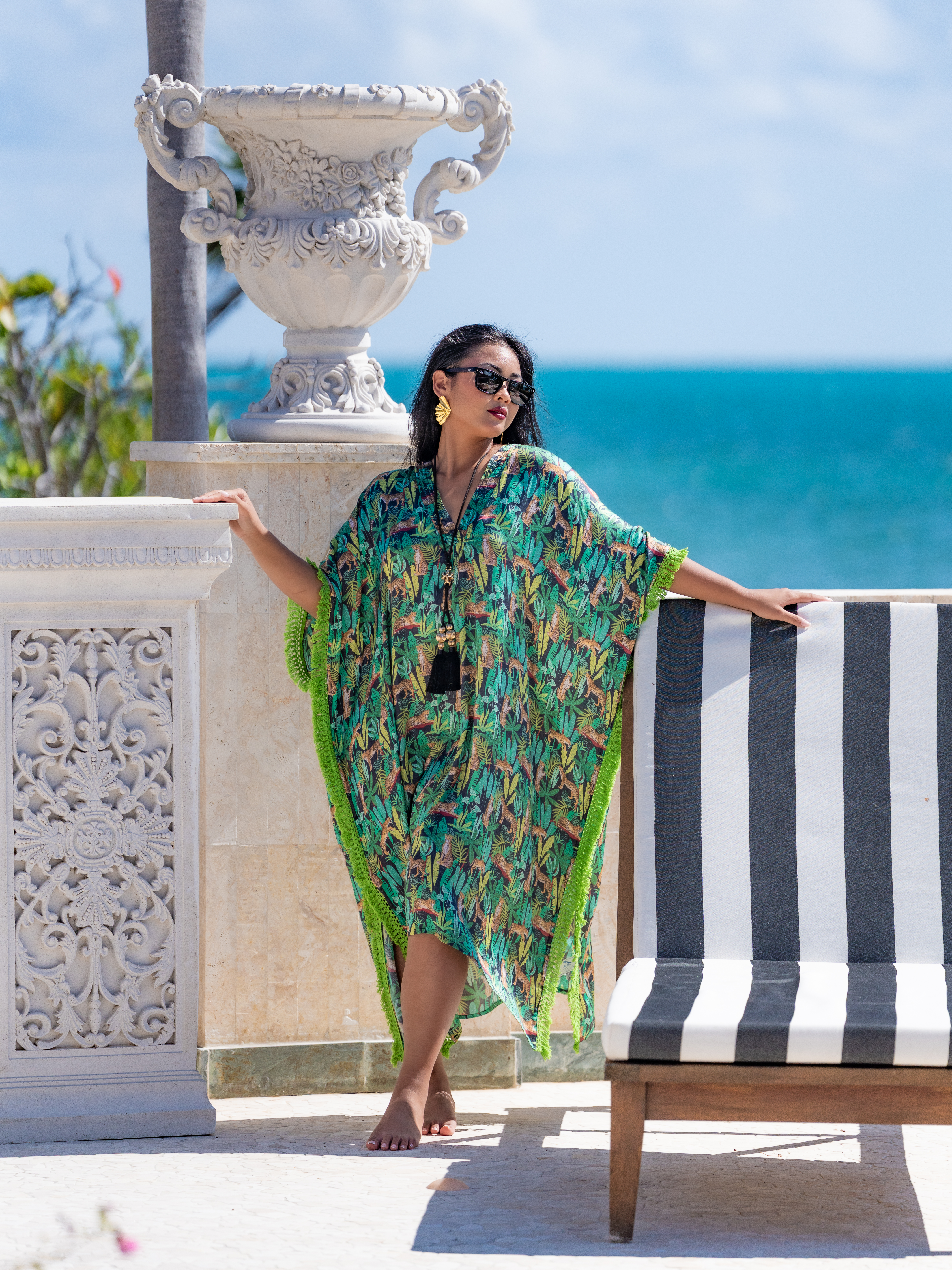 Short kaftan in the bold Guyana Jaguar print.